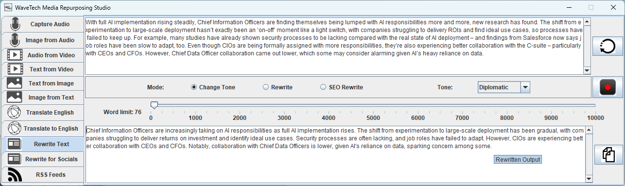 | Social Media Wizard | Automatically rewrite your content for 12 platforms, including LinkedIn, TikTok, Instagram, and YouTube, with tailored styles for each audience. |